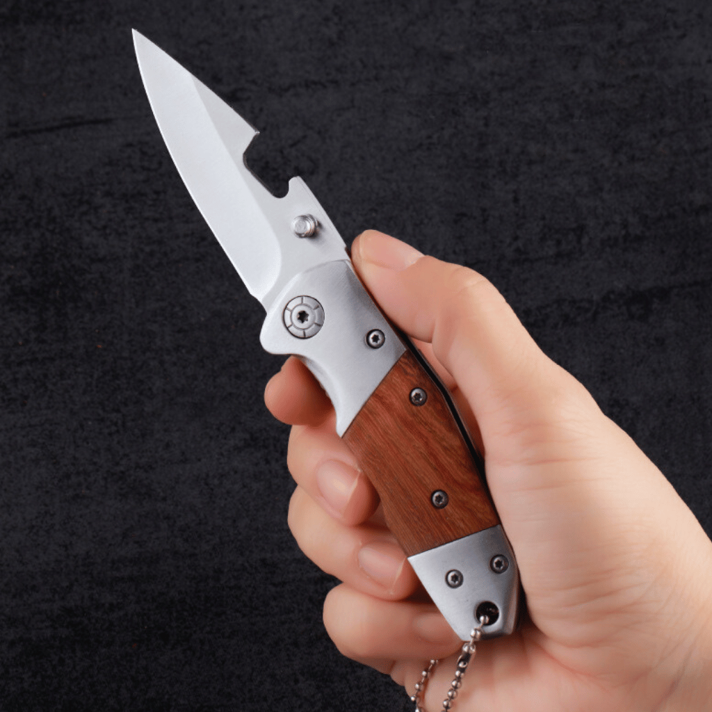 This 15cm Mini Stainless Steel Folding Knife is a durable and compact tool perfect for outdoor activities. Made with high-quality stainless steel with a wooden handle, it guarantees long-lasting sharpness and precision for all your cutting needs. Its compact size and drop point cut makes it easy to carry and store as well as allowing you to complete anything you need to do with ease, making it a must-have for all outdoor enthusiasts.