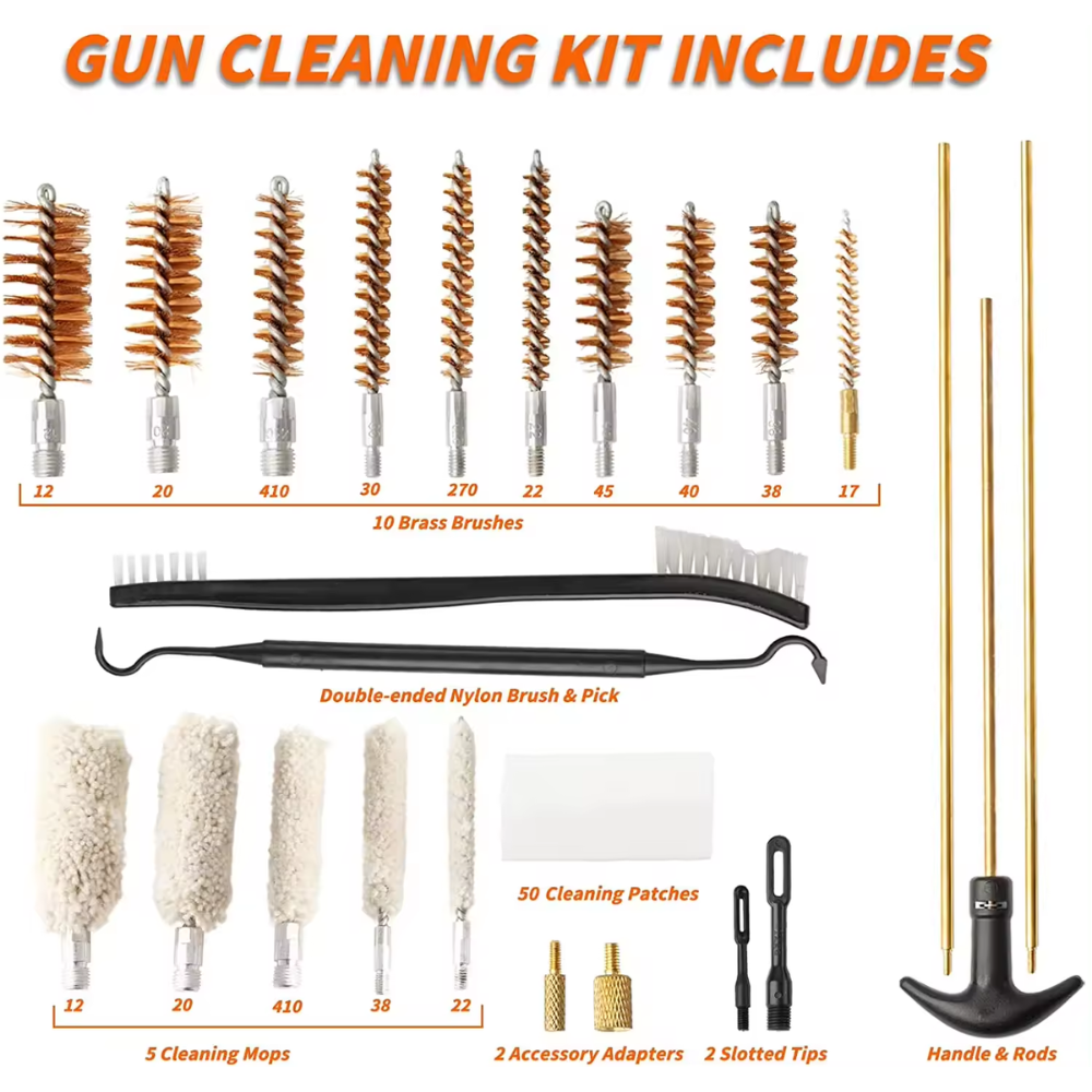 Enhance the longevity and performance of your firearms with our 26 Piece Universal Gun Cleaning Kit. This all in one kit has everything you need to properly maintain your firearm. Display expertise and care for your collection with our superior quality kit, neatly organised in a high quality portable aluminium case. Used for .17/.22/.270/.280/.30/.357/.38/9mm/.40/.410/.44/.45/10GA/12GA20GA/28GA calibres.