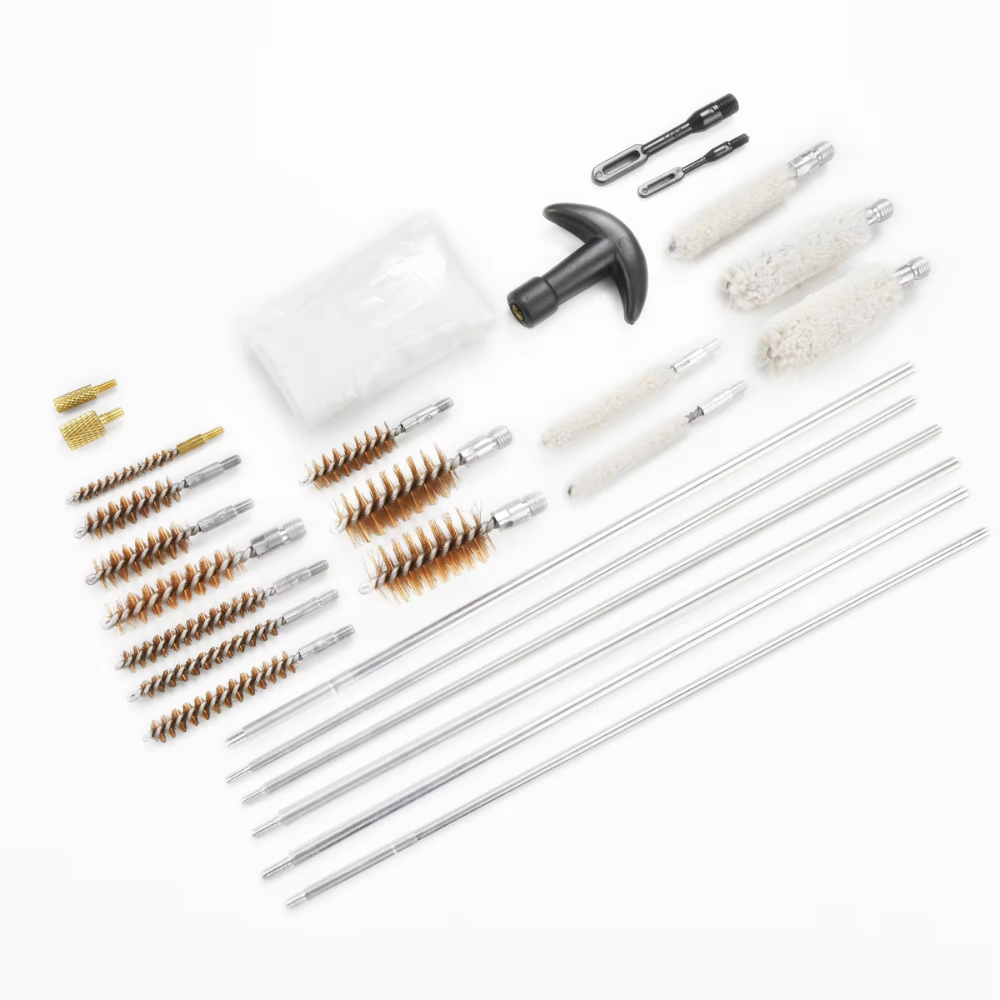 Keep your firearms in top condition with our 28 Piece Universal Gun Cleaning Kit. This all in one kit includes everything you need to maintain your firearm, ensuring optimal performance and longevity for your firearms. Take pride in your collection and care for it like a pro with our top quality cleaning kit neatly assembled in a high quality aluminium case. Used for .17/.22/.270/.280/.30/.357/.38/9mm/.40/.410/.44/.45/10GA/12GA20GA/28GA calibres.
