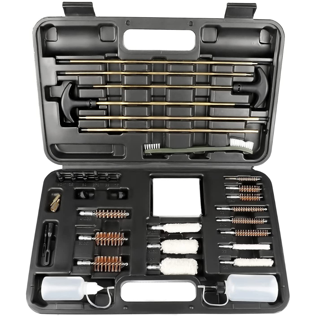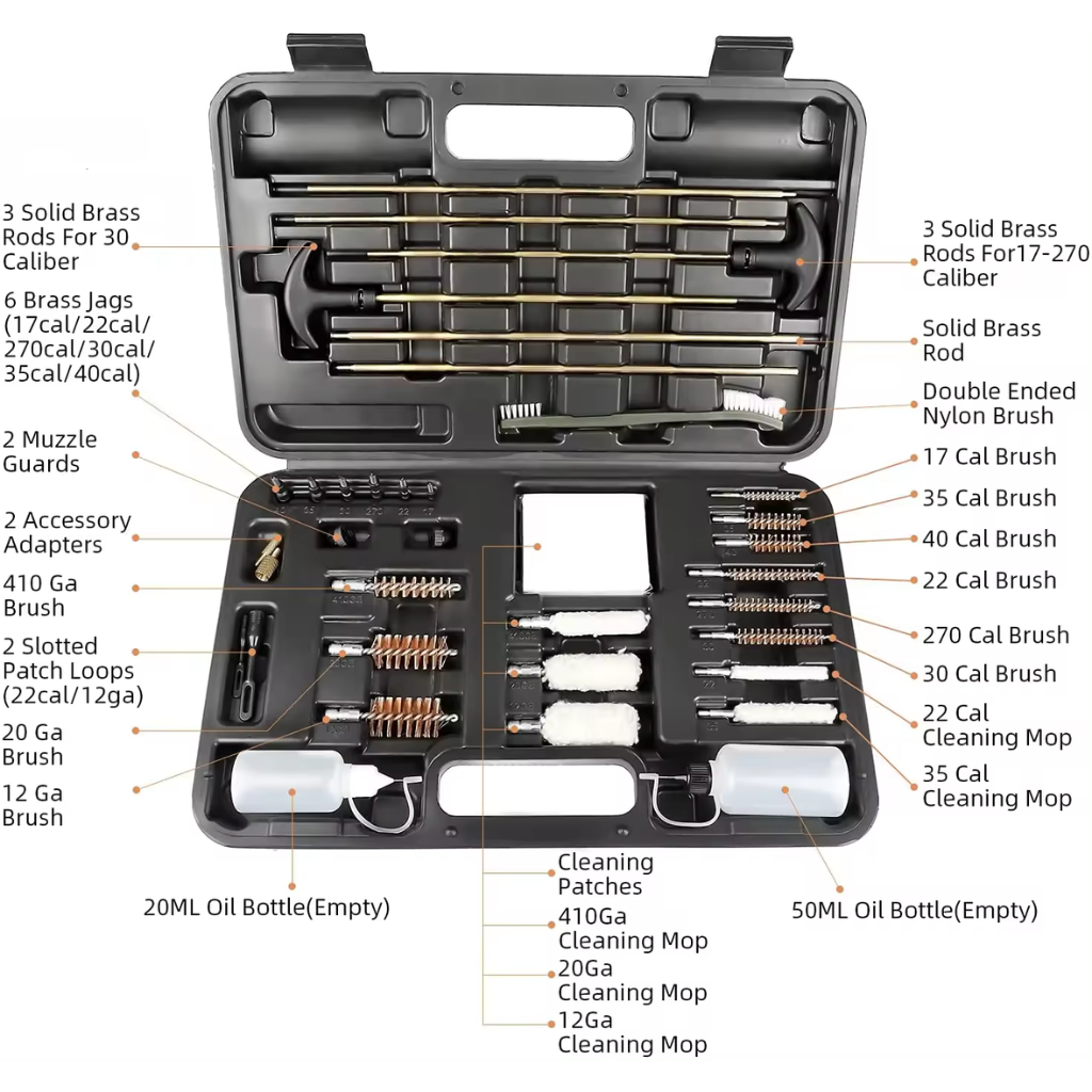 Ensure optimal maintenance of your firearms with the Shooters Mart 37 Piece Universal Gun Cleaning Kit. This comprehensive kit includes all the necessary tools you need to provide expert level care for your collection. Securely store and transport your cleaning kit in the premium portable case, made from high quality, durable nylon plastic. Used for .17/.22/.270/.280/.30/.357/.38/9mm/.40/.410/.44/.45/10GA/12GA20GA/28GA calibres.