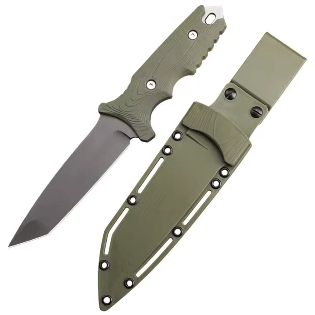 Made with durable stainless steel, this army green knife comes with a sheath for safe and easy storage. Perfect for outdoor adventures or everyday use, this knife is sure to be a dependable and practical tool. A must-have for any knife enthusiasts collection.