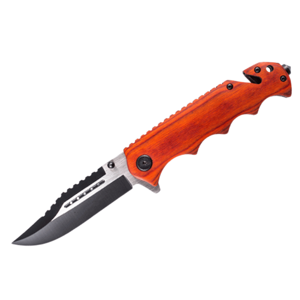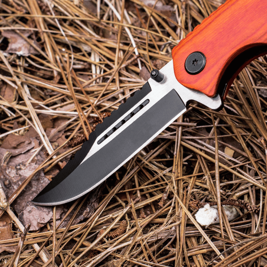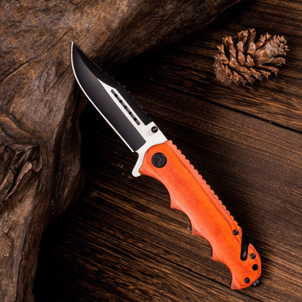 Black Stainless Steel Folding Knife Wood Handle