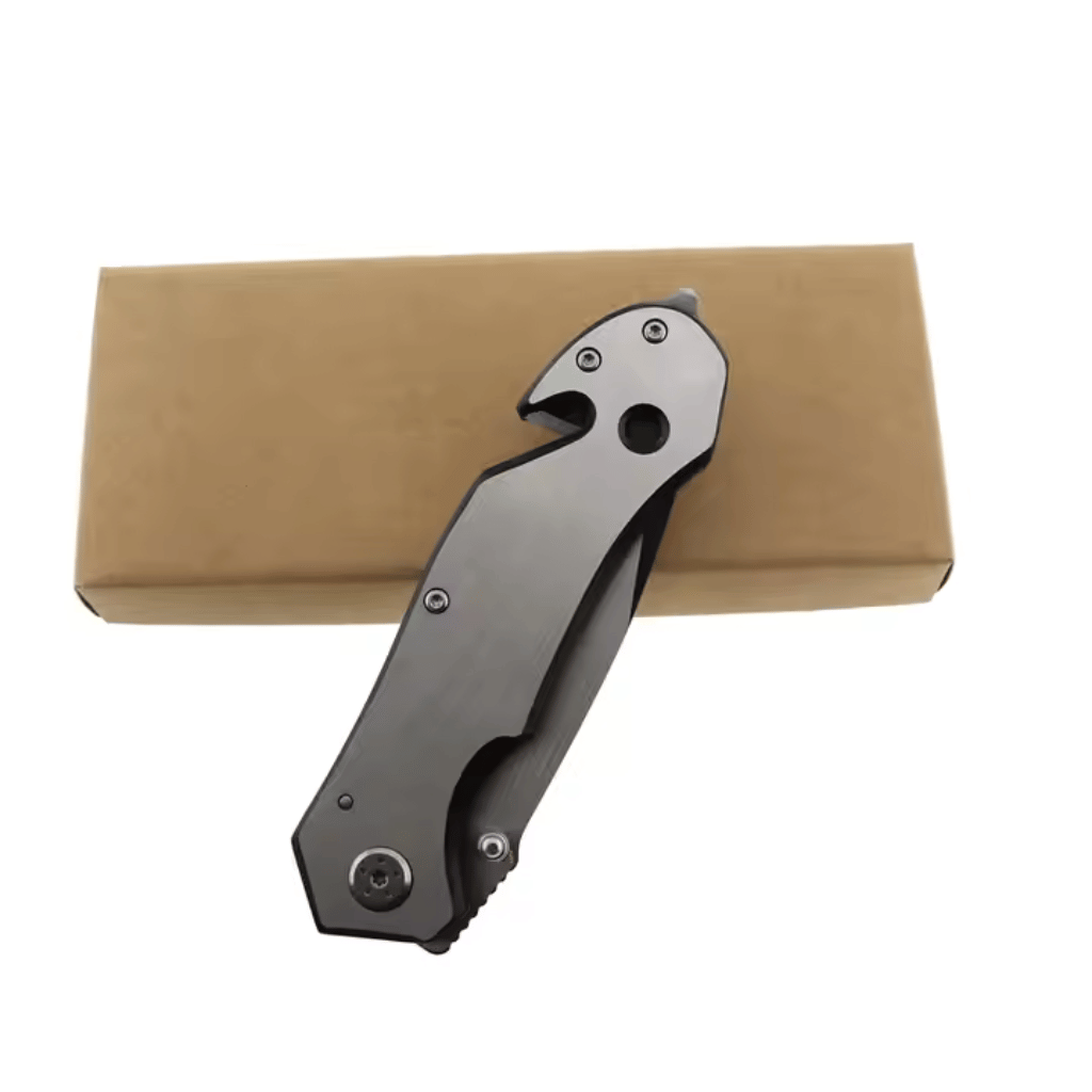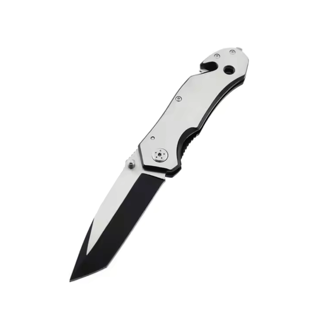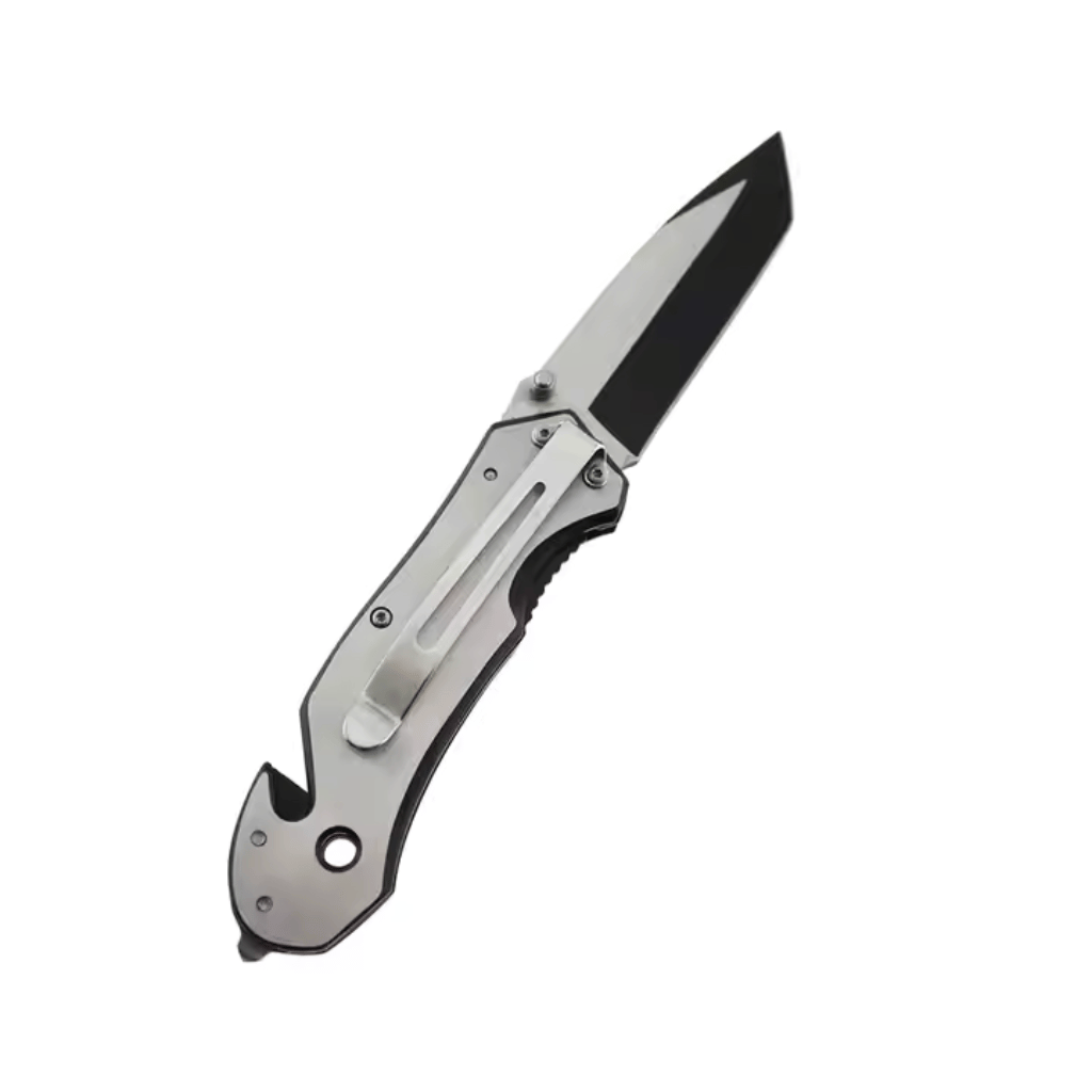 Expertly crafted from durable stainless steel, this folding knife boasts a sleek blackened edge for an enhanced look. Perfect for outdoor adventures or everyday use, its compact design makes it easy to carry and its sharp blade ensures precision cutting.