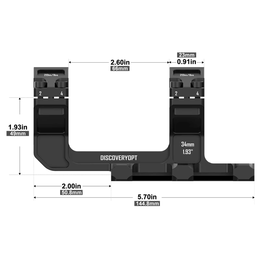 Discovery 34mm 0 MOA Rigid High Profile Picatinny Cantilever Scope Mount