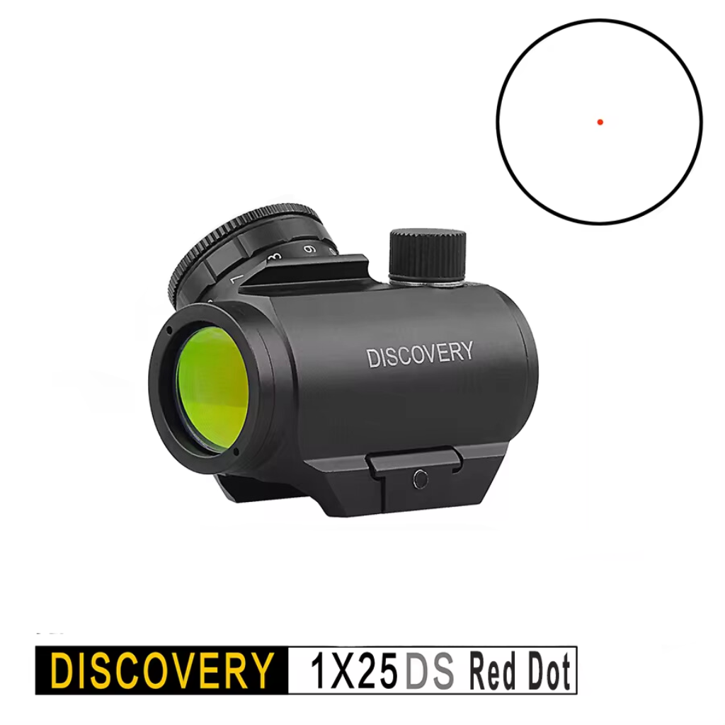 Find your target with precision and ease using the Discovery Optics 1x25 D5 Red Dot Sight. With high transmittance for clear viewing, shock proof and water proof durability and aircraft grade aluminium for high quality strength, this red dot sight is the ultimate choice for any firearm.
