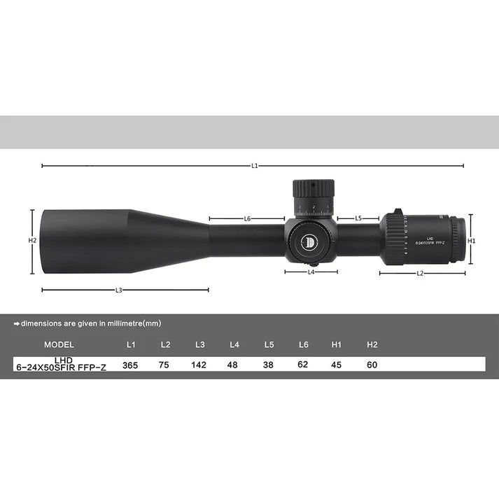 Experience unparalleled accuracy and precision with the Discovery Optics LHD 6-24X50SFIR FFP-L Scope. Featuring a first focal plane reticle, this scope allows for faster range estimation and holdover corrections at any magnification level. With a wide range of magnification and advanced features, this scope is perfect for long-range shooting.