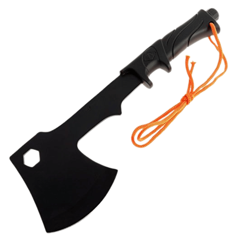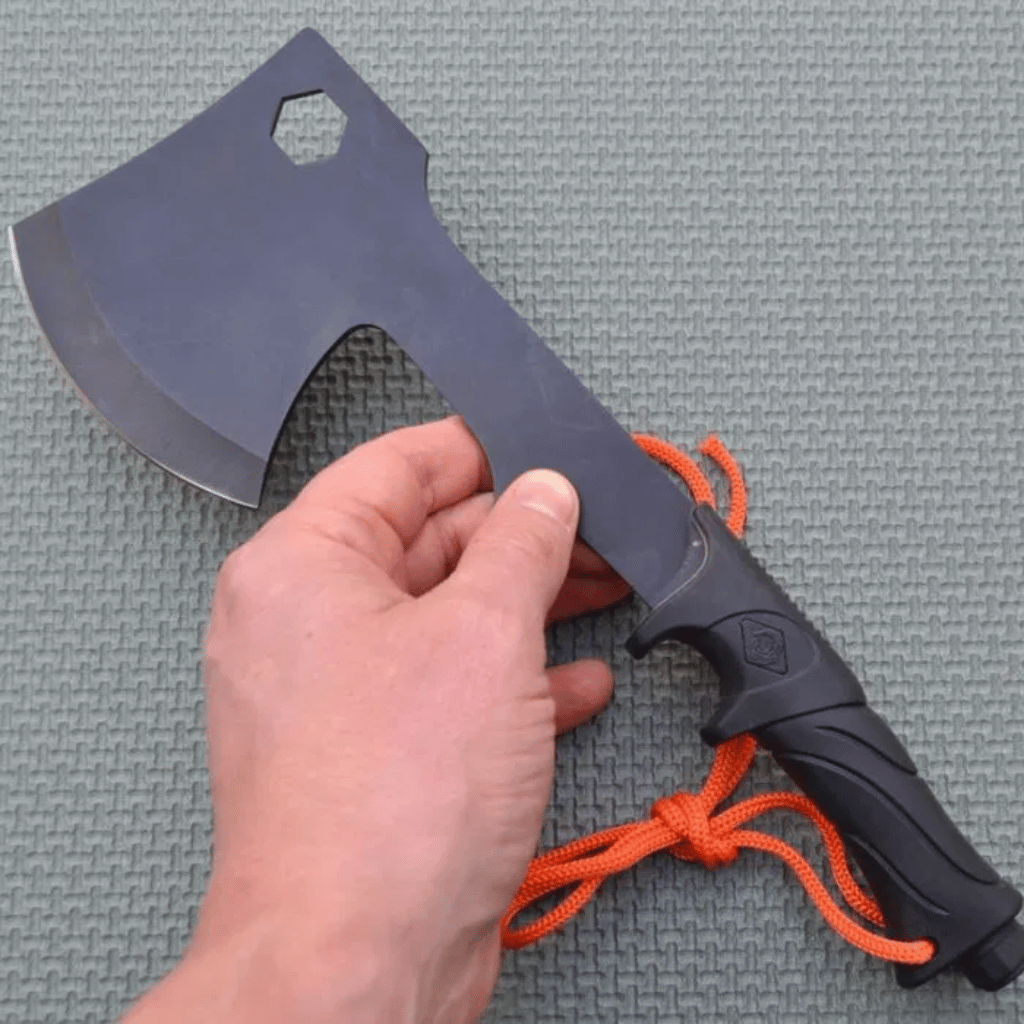 Crafted with precision using durable and lightweight blackened stainless steel, our Onyx Full Tang Hatchet combines an ergonomic design with unbeatable strength. Perfect for any outdoor enthusiast, this hatchet boasts a full tang for superior balance and control, making it a reliable tool for all your camping and hiking needs.