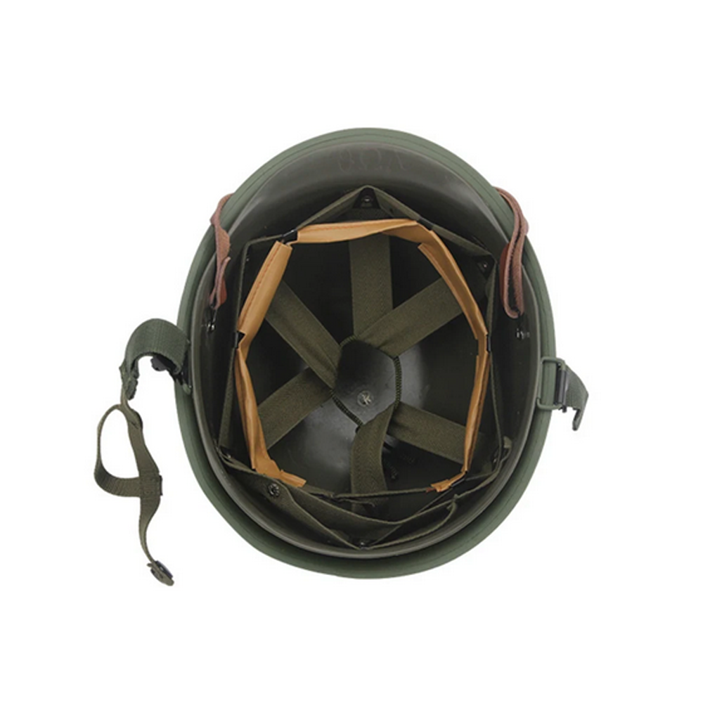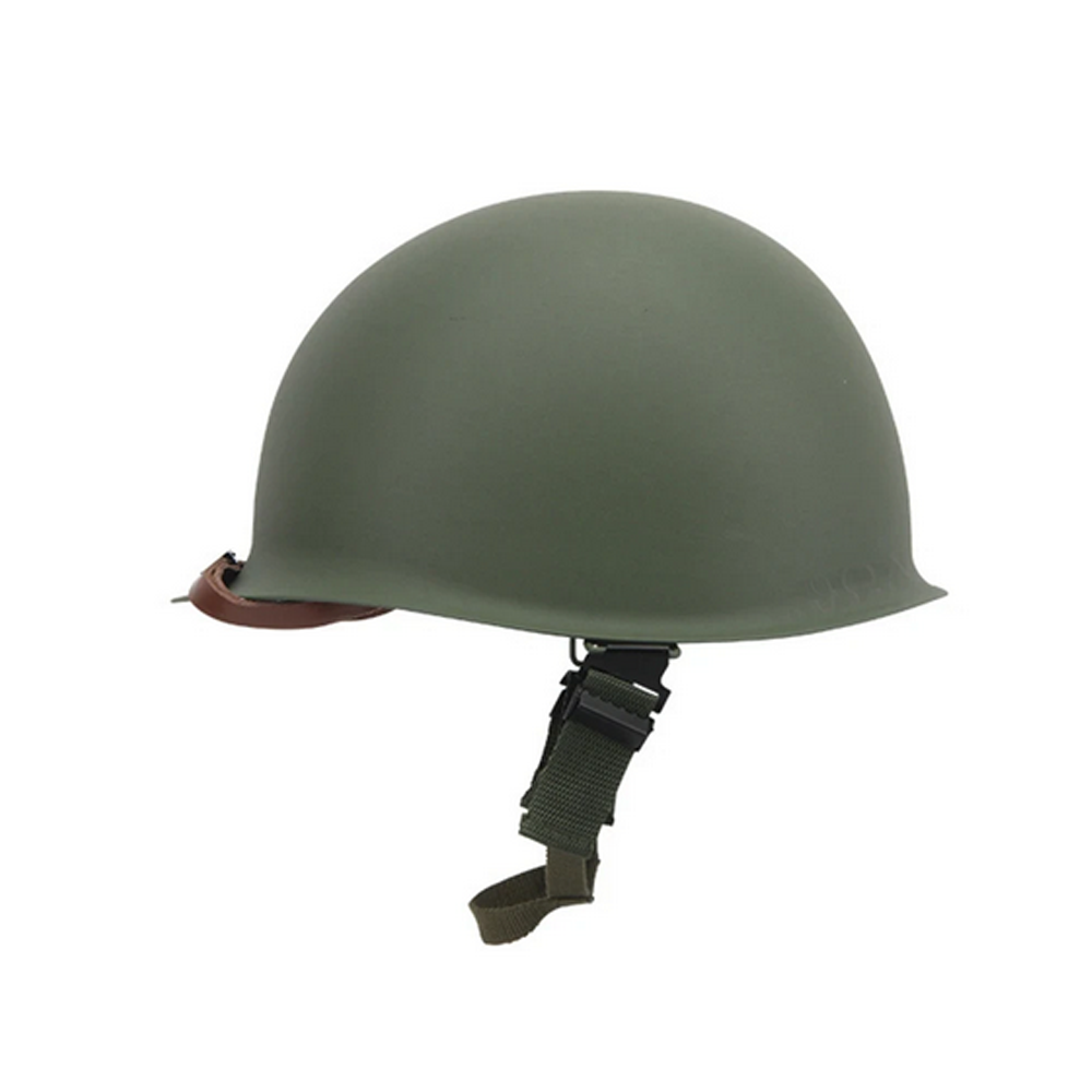 A faithful replica of the iconic WW2 M1 helmet, finished in classic military green. This iconic helmet captures the look and feel of the original while offering practical use for display or re-enactments. Perfect for collectors and history enthusiasts alike.