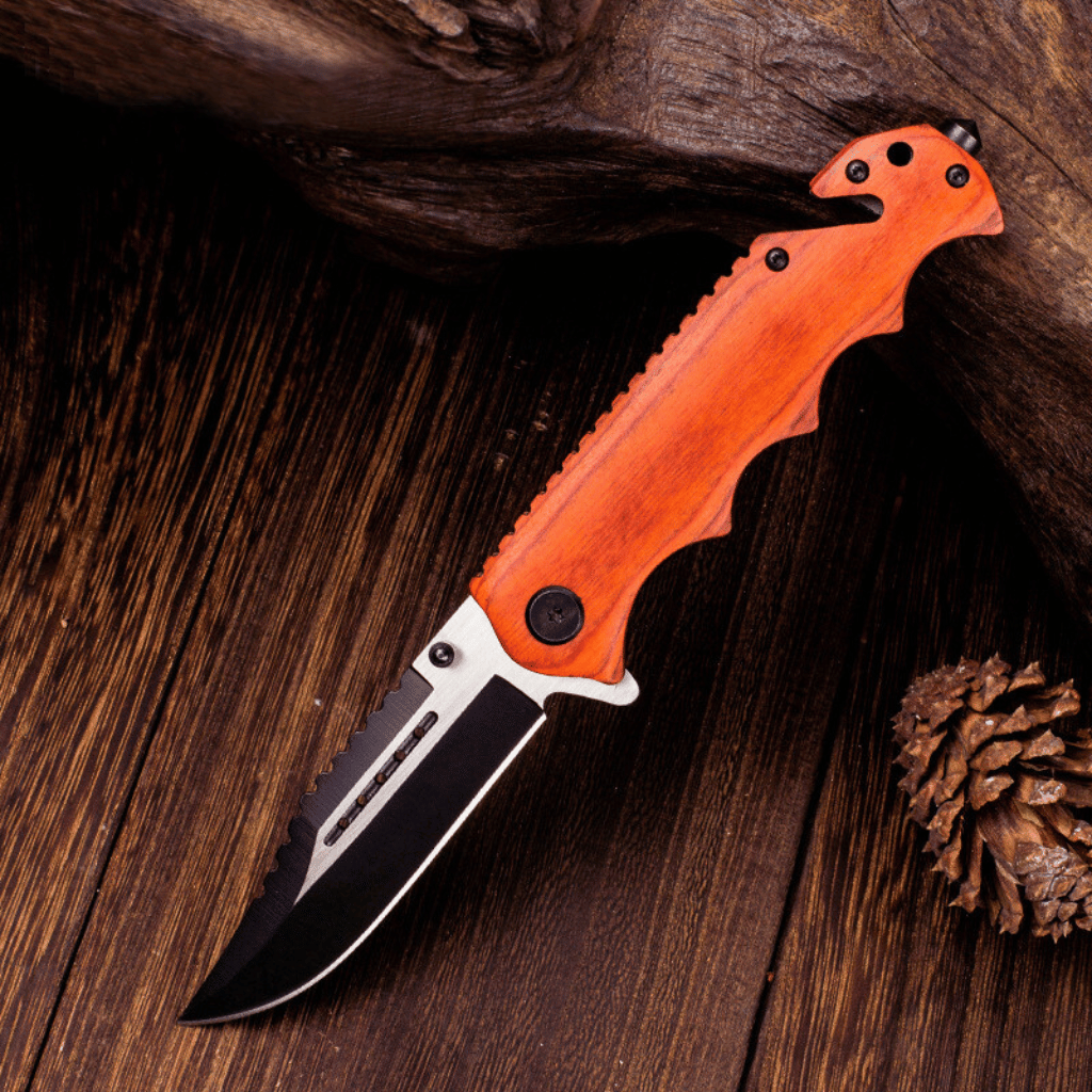 Expertly crafted with blackened 3CR13 stainless steel, this multifunctional survival pocket knife is a must-have for any outdoor enthusiast. Its durable design ensures long-lasting use while its versatile features include a safety belt cutter and glass breaker. Perfect for camping, hiking, and everyday tasks.