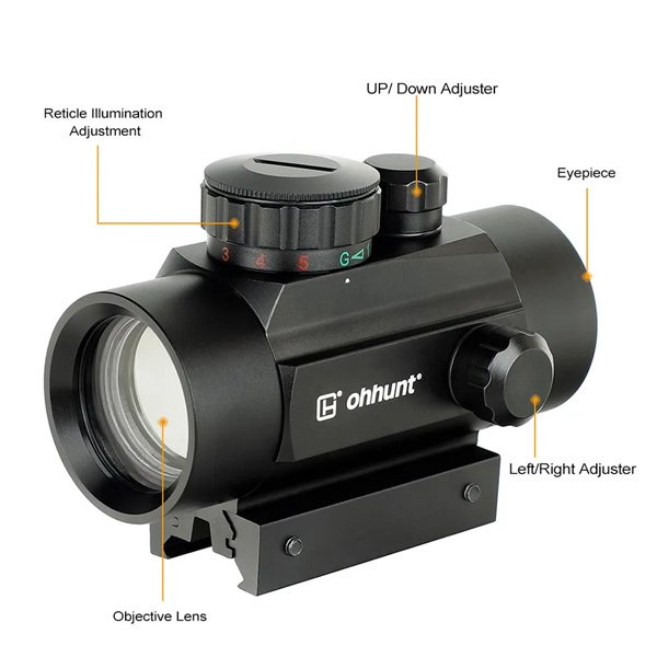 Featuring a crisp red dot reticle, the OhHunt 1x40 Red Dot Sight provides rapid target acquisition and clear optics. Its robust build ensures reliability in various shooting conditions. Designed for versatility, it fits easily onto most Picatinny rails.