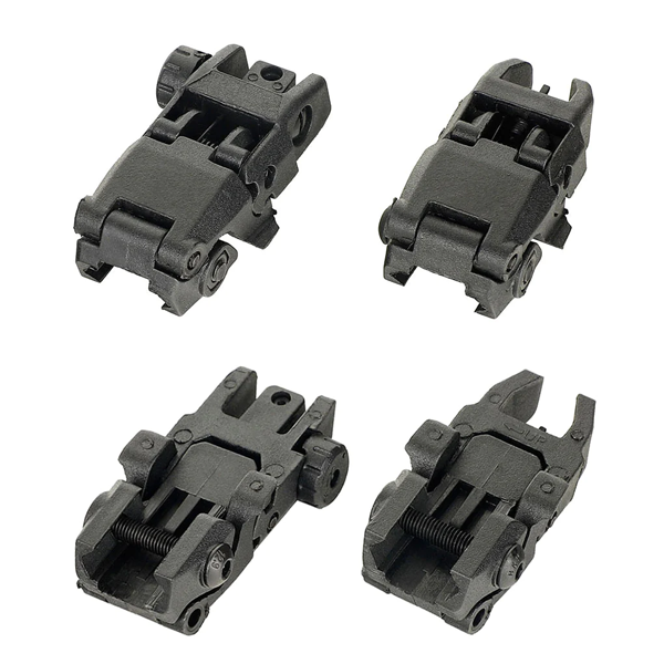 Upgrade your firearm with the OhHunt Flip-Up Front and Rear Sights. Designed for accuracy and durability, these black flip up sights provide superior target acquisition and precise shot placement. Perfect for any shooting scenario, take your aim to the next level with these high quality and easy to install sights.