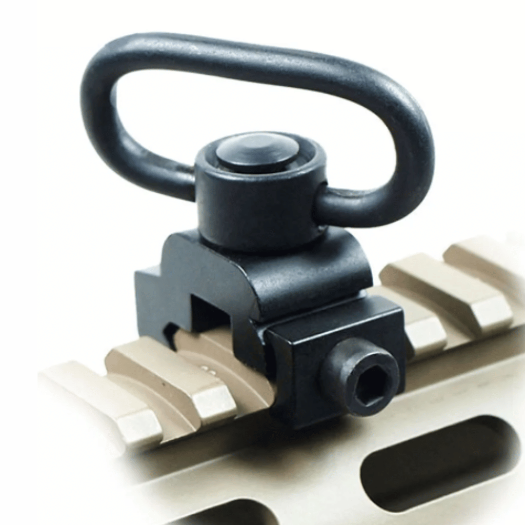 Looking to attach a swivel or sling to your Picatinny system? The Picatinny and Weaver Swivel Rail Mount is an ideal complement to any swivel or gun sling, offering smooth 360 degree motion and comfortable handling. Fits the standard 1 and 1/4 inch gun slings.