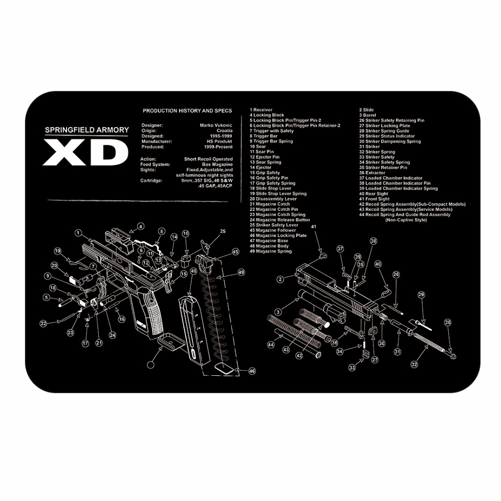 Efficiently clean your firearm with our Springfield Armory XD Gun Cleaning Mat. This gun cleaning mat allows for detailed maintenance and care of your firearm in an organised and easy fashion. The medium sized mat is water proof, scratch proof and maintains its design through any amount of machine washing.